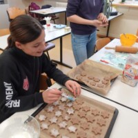 Als schließlich alles aus dem Ofen kam und sich auf den Tischen stapelte fiel uns auf: Wir können das gar nicht alles essen. Deshalb wurden kurzerhand alle leeren Brotbüchsen, Schüsseln und Tassen mit Zimtsternen und Spritzgebäck befüllt.