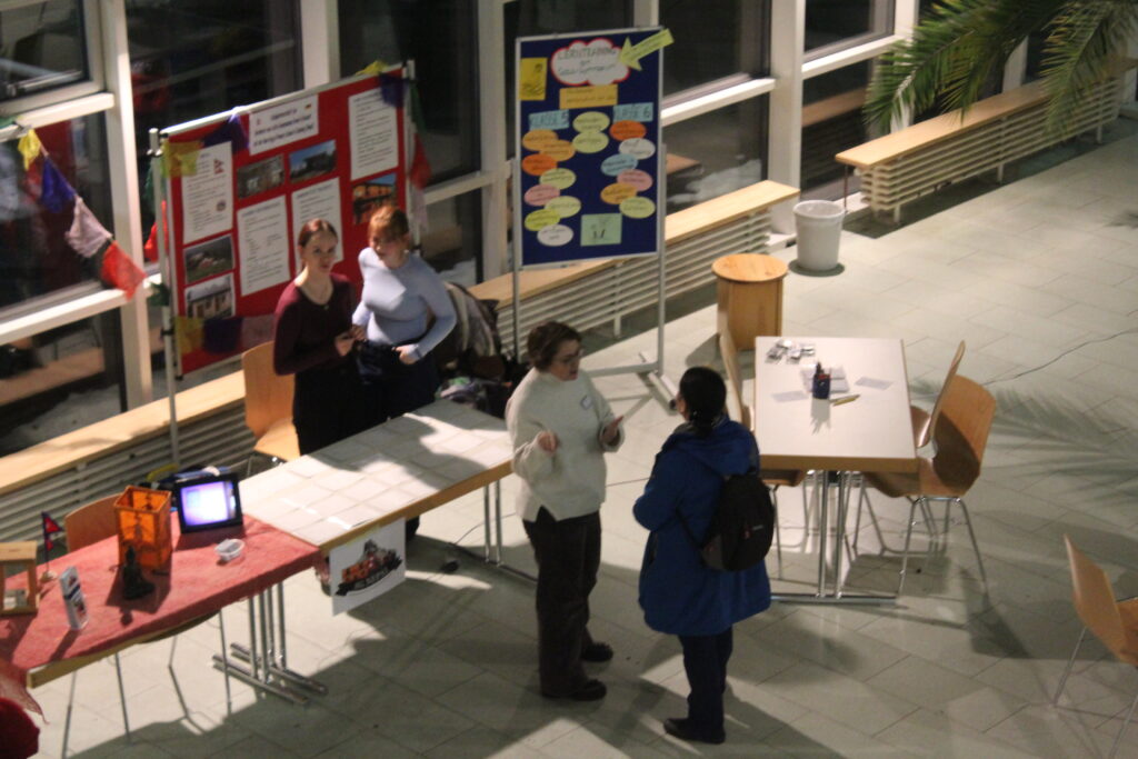 In der ganzen Schule verteilt gab es kleine und größere Stände an denen man einfach anhalten und sich informieren konnte. Zusätzlich stellten sich einige Fächer und Ganztagsangebote in den Klassenräumen vor. Schon im Atrium wurde man empfangen: Direkt am Eingang stellte sich die Nepal-AG vor und gab Einblicke in ihre Projekte wie den Nepallauf oder den Adventsmarkt.