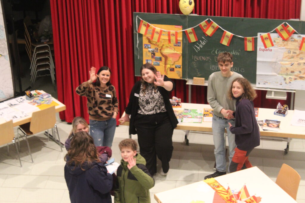 Von dort aus ging es weiter in die Mensa, wo sich die Sprachen präsentierten. Englisch, Spanisch, Französisch und Russisch zeigten, was man an unserer Schule ab der 5. und 6. Klasse lernen kann – und auch Latein war vertreten, als Ausblick für spätere Jahrgänge und das sprachliche Profil am Cotta.