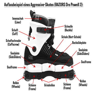 Ein Inlineskate hat einen bestimmten Aufbau, der bei fast allen Inlinern übereinstimmt. Die einzelnen Details wie zum Beispiel Material oder Farbe sind aber unterschiedlich. Die einzelnen Bestandteile sind zu einem bestimmten Zweck da.